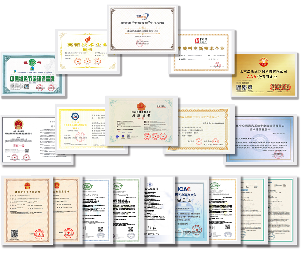 公司拥有“国家高新技术企业”“中关村高新技术企业”双资质,北京市“专精特新”中小企业称号,通过了ISO三体系认证、欧盟CE认证、国家CCC认证,并具备机电安装、市政工程、环保工程、消防工程、电子智能化、特种工程、锅炉维保、空调维修等相关专业资质。